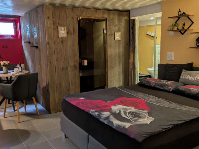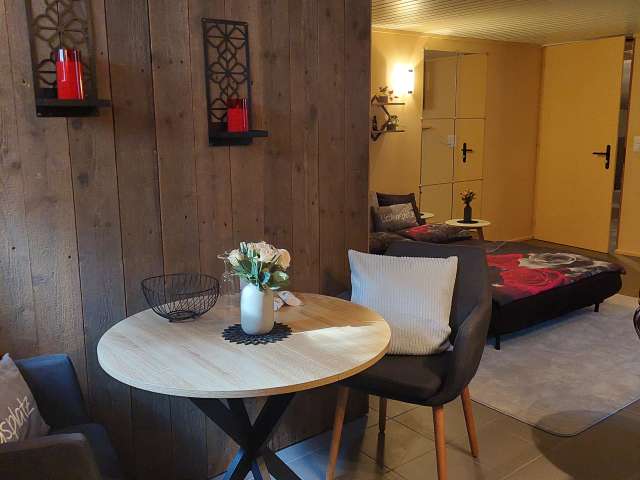 Geniessen Sie erholsame Tage im liebevoll eingerichteten, 36 m² grossen Zimmer mit eigenem Hauseingang und Parkplatz. Hier erwartet Sie eine gemütliche Atmosphäre, die zum Entspannen und Verweilen einlädt.