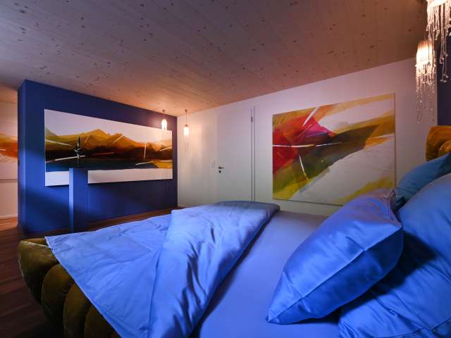 Für längere Aufenthalte steht eine stilvolle 5 ½ Zimmer Ferienwohnung mit 170 m2 Wohnfläche zur Verfügung. Mit ihrem hellen Wohn- und Essbereich, einem gemütlichen Wintergarten, zwei separaten Schlafräumen, jeweils mit eigenem grossem Bad und Ankleide sowie Garten und Sitzplatz bietet sie hohen Wohnkomfort in ruhiger Lage.