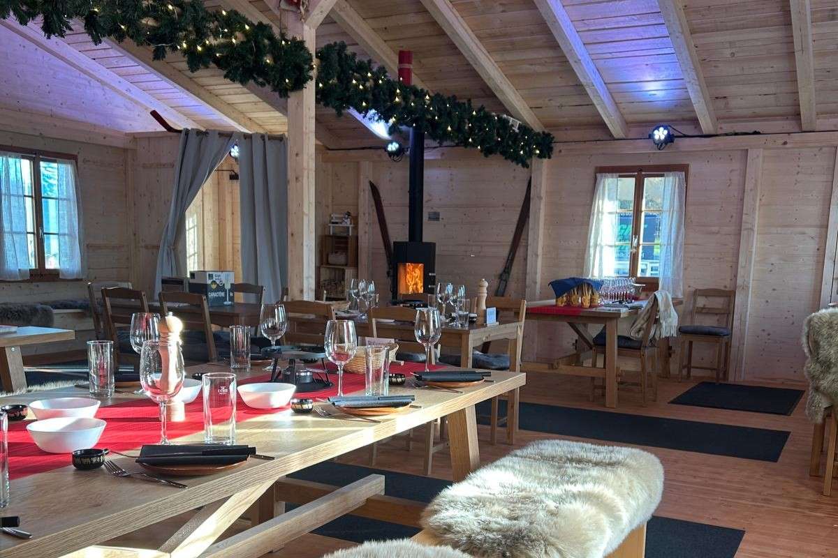 Für besondere Anlässe steht unser Winterchalet zur Verfügung, das Fondue-Abende für Gruppen bis zu 54 Personen ermöglicht und eine gemütliche Atmosphäre für Firmenanlässe und Feste schafft.