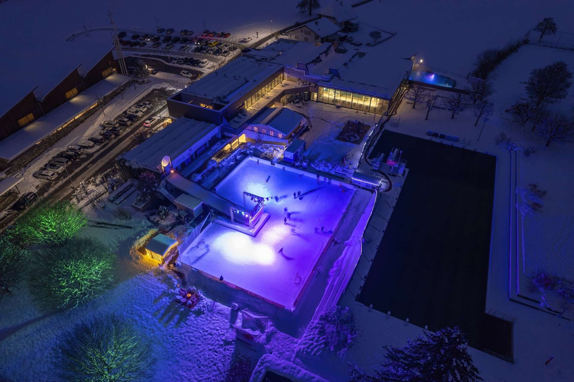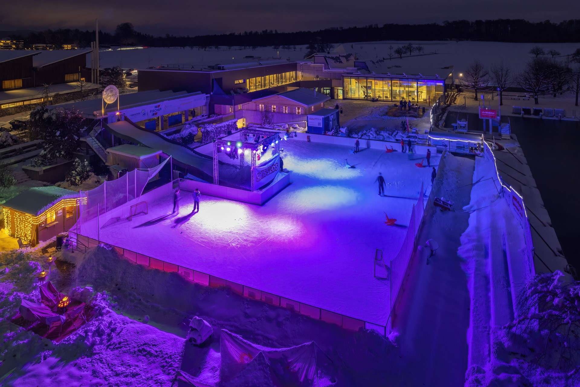 Iisch, Spass, Bewigig: Die IceArenA lädt mit zwei Eisfeldern, Winterchalet und buchbaren Fondue-Abenden und Eisstockschiessen zu einem Wintererlebnis für Gross und Klein ein.